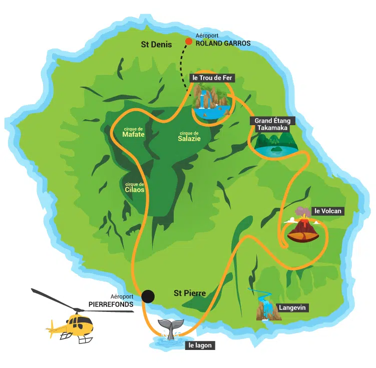 Parcourez les trois cirques et découvrez les remparts époustouflants, puis visitez le Trou de Fer, l’une des chutes d’eau les plus élevées du monde et l’une des plus inaccessibles. Après cette expérience, explorez la forêt de Bélouve et dirigez-vous vers le Piton de la Fournaise, avec ses cratères et ses nombreuses coulées de lave, avant de terminer votre voyage en profitant du somptueux lagon.