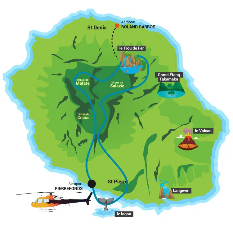 Survolez les remparts qui séparent les cirques et les cascades qui animent l’île. Entrez dans l’incontournable Trou de Fer et ayez la chance de découvrir ce qu’on ne peut pas voir à pied.